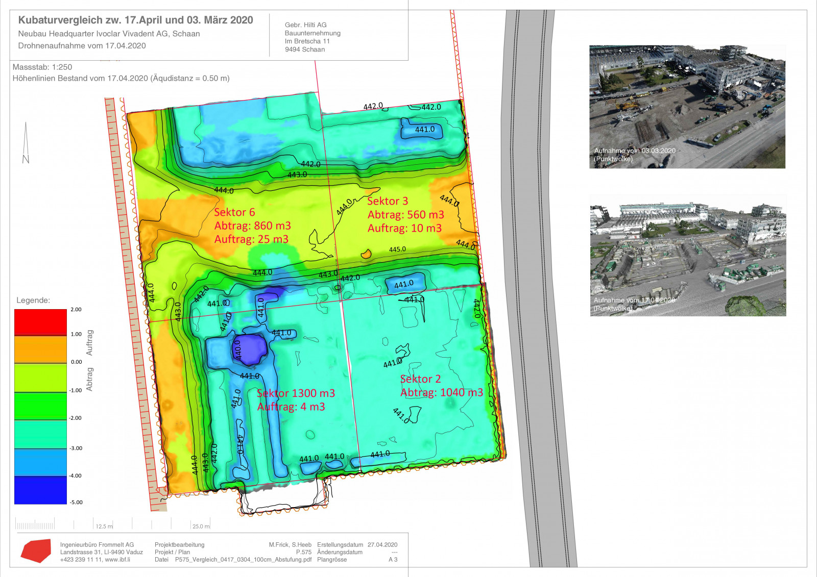 Umfang | Einmessung der Baugrube zur Ermittlung des Aushubvolumens mittels Drohnenvermessung in drei Etappen. Auswertung und Prozessierung der Luftbilder zur 3D-Punktwolke mit anschliessender Kubaturberechnung. |